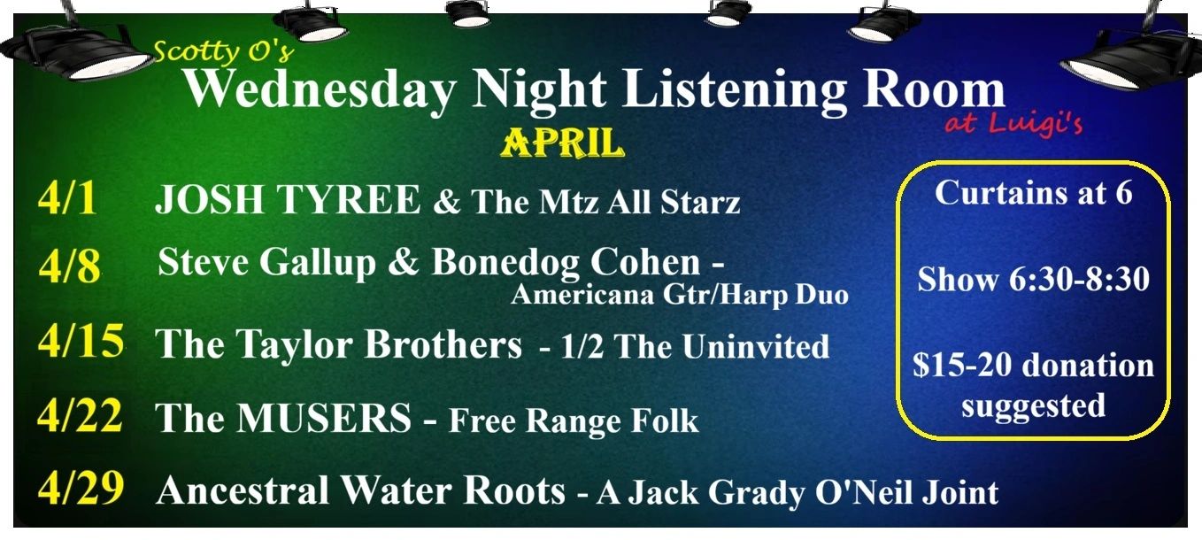 Now it has has become 'the' go-to venue for ardent music fans of a supportive, listening and attentive audience. Scotty currently books/hosts, promotes and does sound support for each Wednesday Night act.