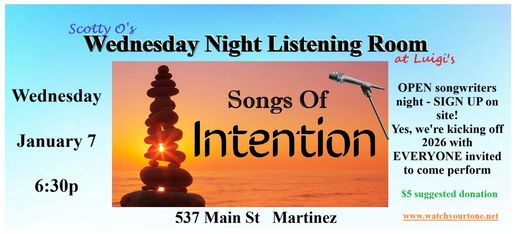 DEBUT OF 2026 SEASON OPENER: 1/7/26 OPEN INVITATION SONGWRITER COMMUNITY NIGHT